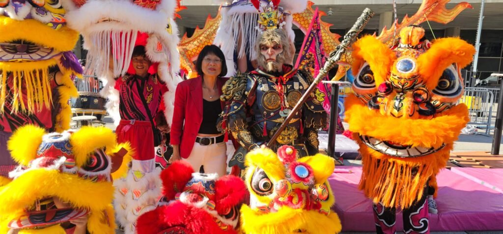 多伦多市长邹至蕙 兴致勃勃与黑悟空和舞狮演员合影