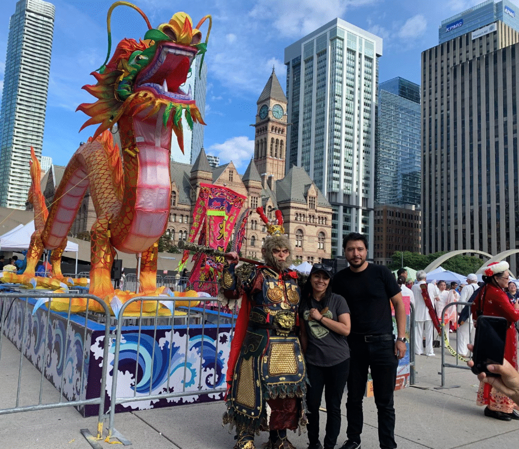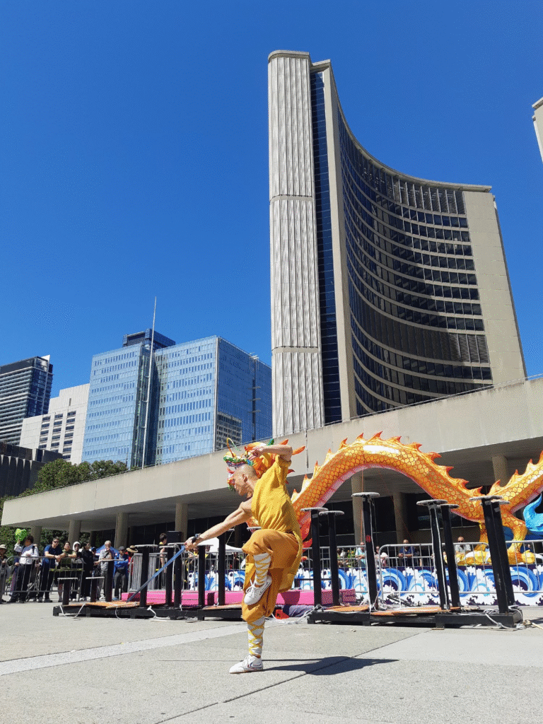今年的龙文化节,依旧坐落于多伦多市政厅广场核心地带,却比以往更具冲击力。超100个摊位、1800人次演员、600名志愿者,三个舞台从白昼到深夜连轴转:传统舞龙舞狮、现代街舞、功夫铁头功、太极汉服秀、水上芭蕾舞影、宠物马戏、辣妈派对、悟空哪吒合影排长队……精彩到令人应接不暇,目不转睛。