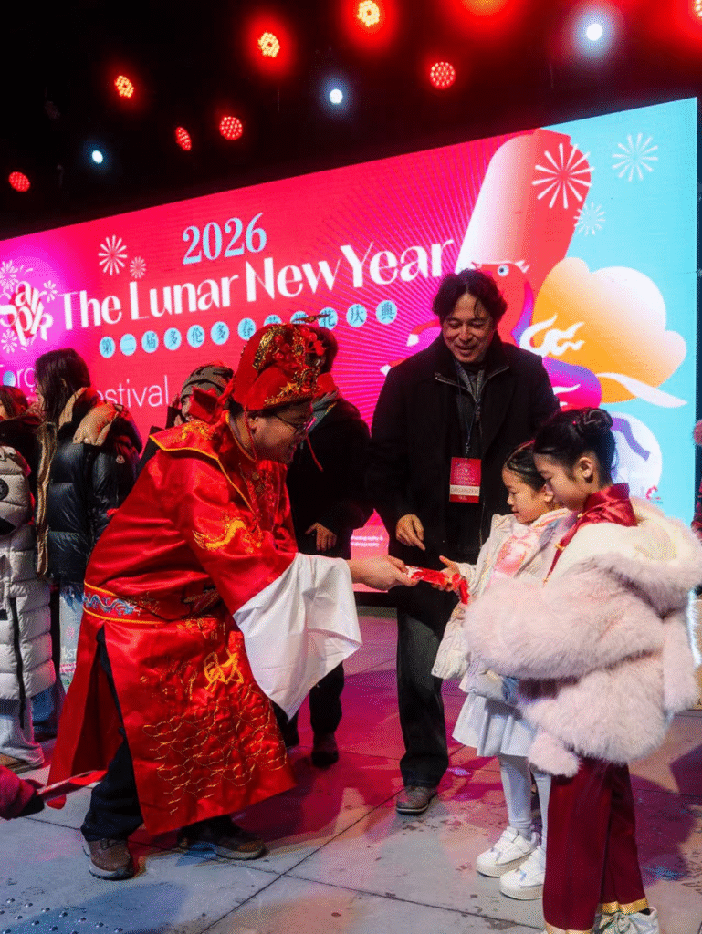 活动现场,Markham Metals Ltd. 特别派出企业代表登台扮演“财神”,为市民送上新春祝福,并向现场群众派发新春红包。