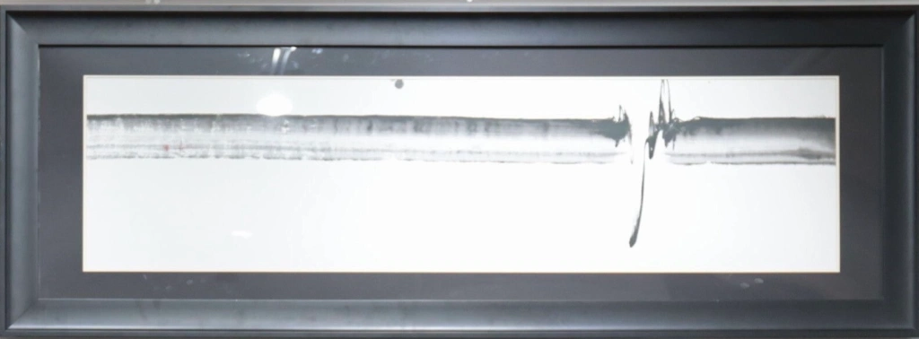 此次展览的主题作品《环宇一心》以一笔完成,气势磅礴,意境深远,象征着人类命运共同体的心跳共鸣。这幅水墨画虽无具象,却以极简线条传达“同频共振”的哲思,展现出中式含蓄与西方哲学的融合,令观者久久沉浸。
