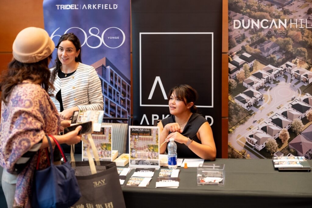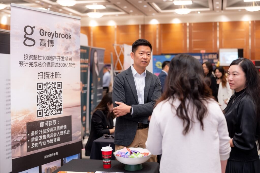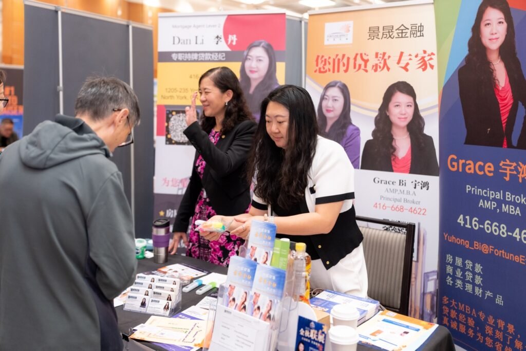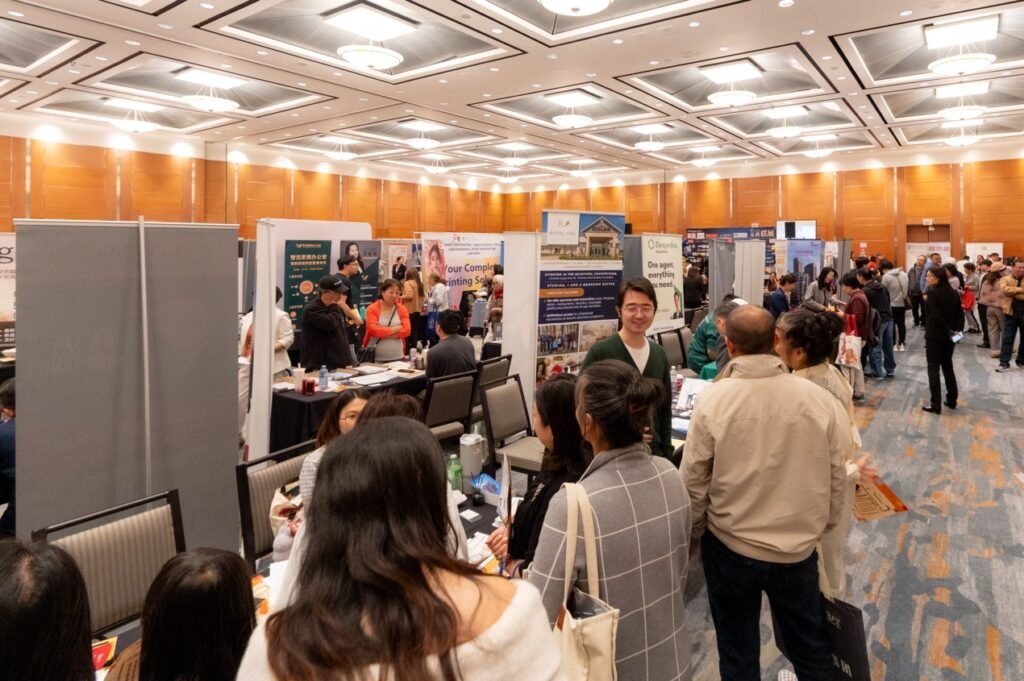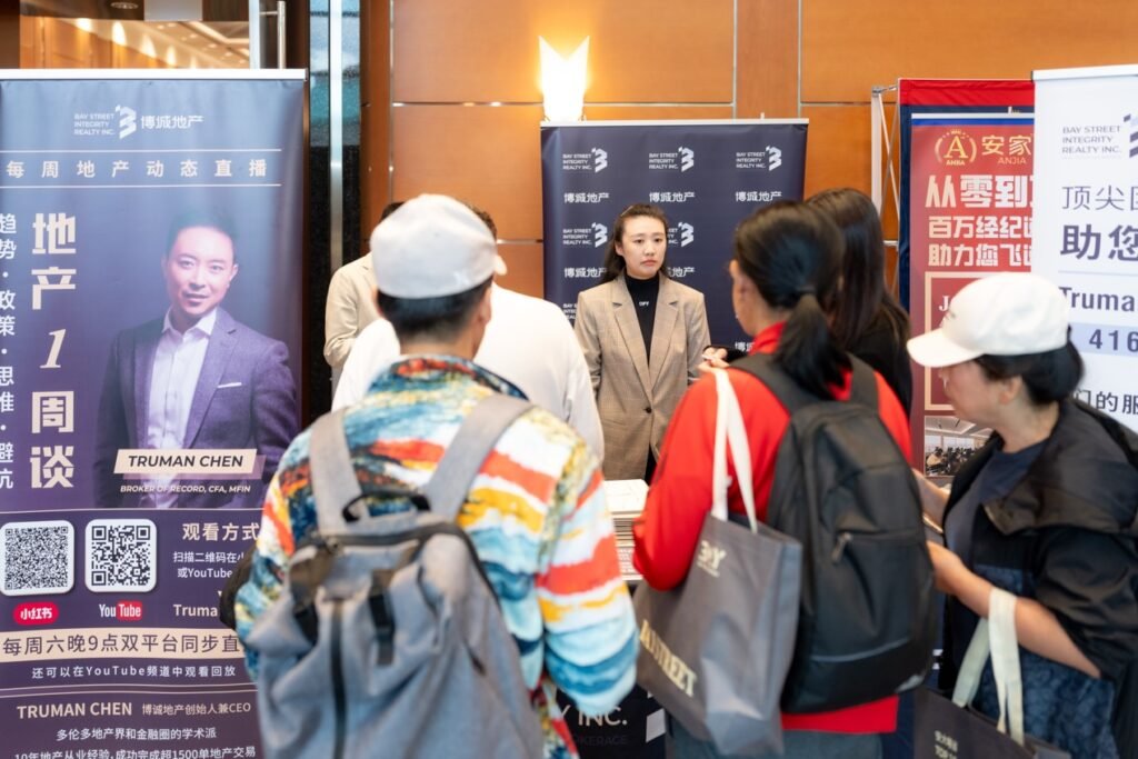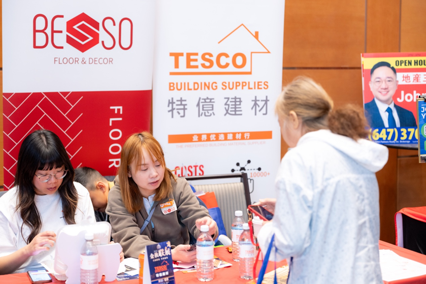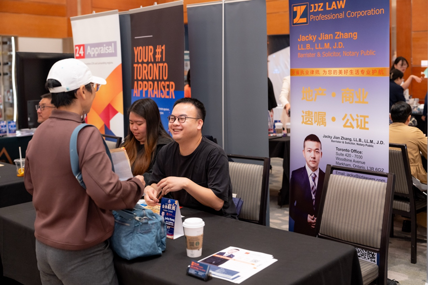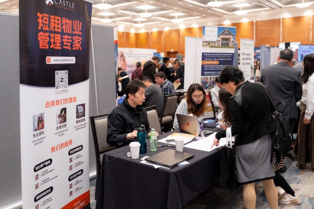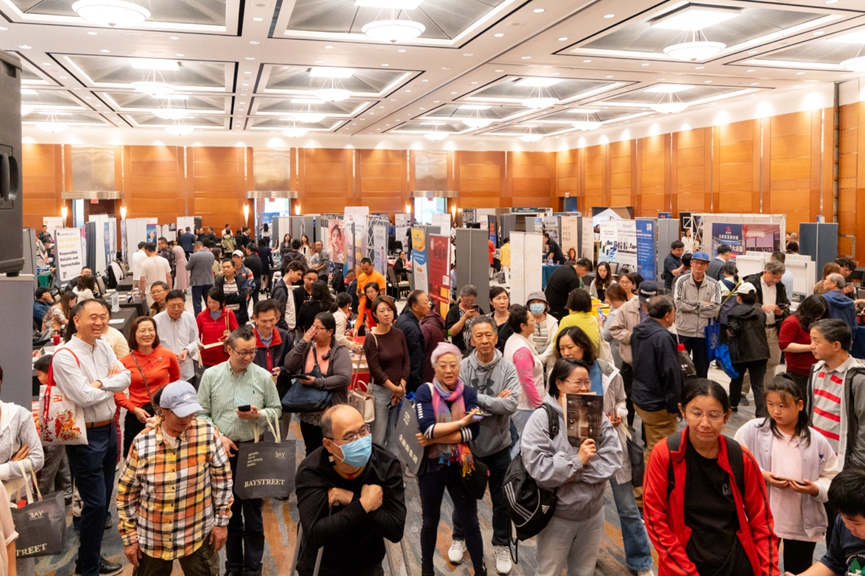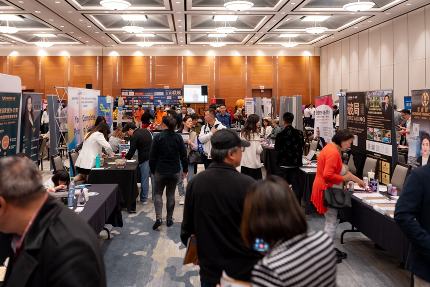 在万锦希尔顿酒店的大展厅里,人潮汹涌,灯光炫目。地产、金融、建材、移民、教育、美食……近百家商户扎堆亮相,场面像是一场“商业版的音乐节”。无论是投资人、房东群友,还是慕名而来的新朋友,大家都被现场的气氛点燃。