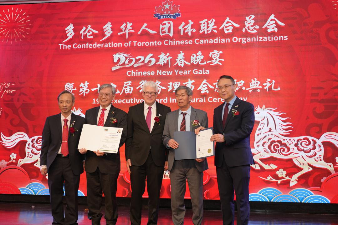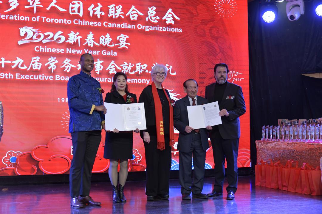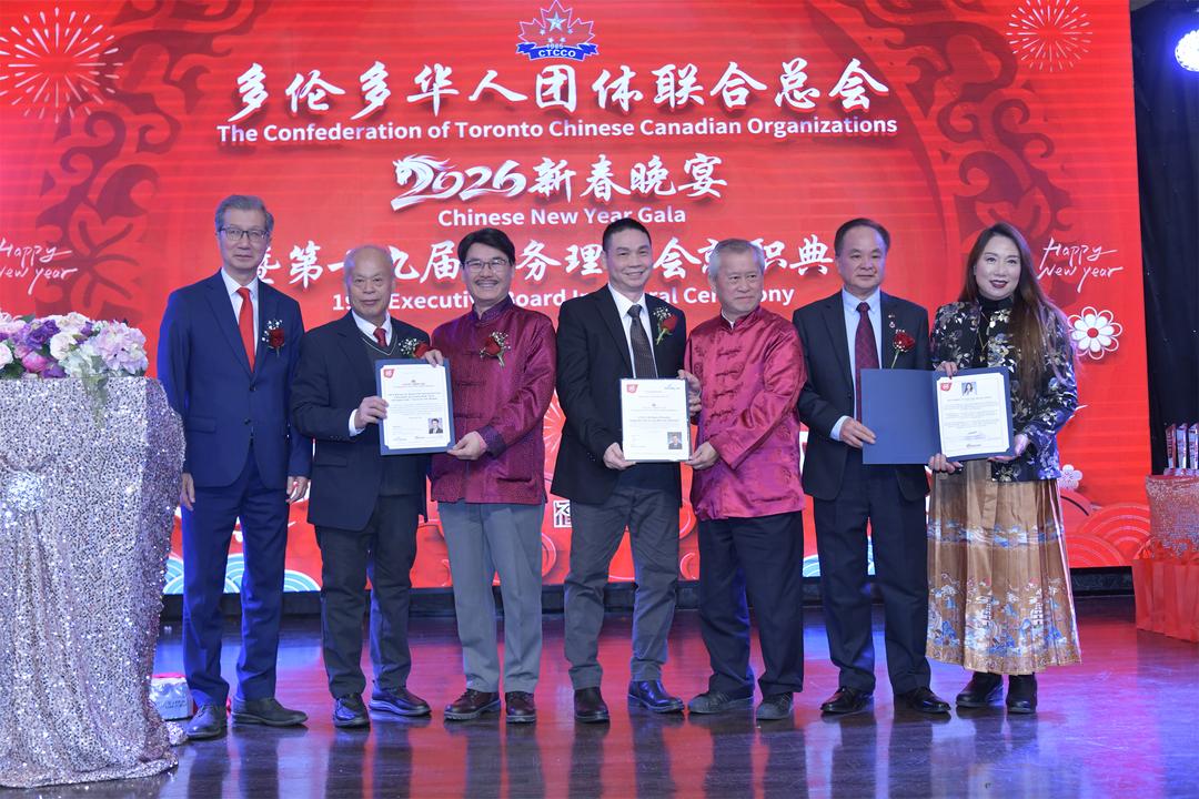 【多伦多讯】丙午马年新春之际,加拿大多伦多华人团体联合总会(Confederation of Toronto Chinese Canadian Organizations,简称华联总会)第19届理事会就职典礼暨新春团拜晚宴在大多伦多地区隆重举行。各级政要、侨界领袖、社区代表及社会各界嘉宾逾600人齐聚一堂,共贺新春,共襄盛举,共同见证华联总会开启新篇章的重要时刻。