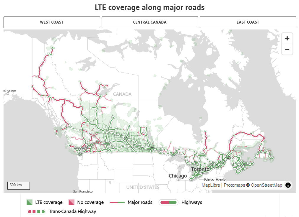 死区遍布加拿大公路:超过 15,000 公里“无信号”
