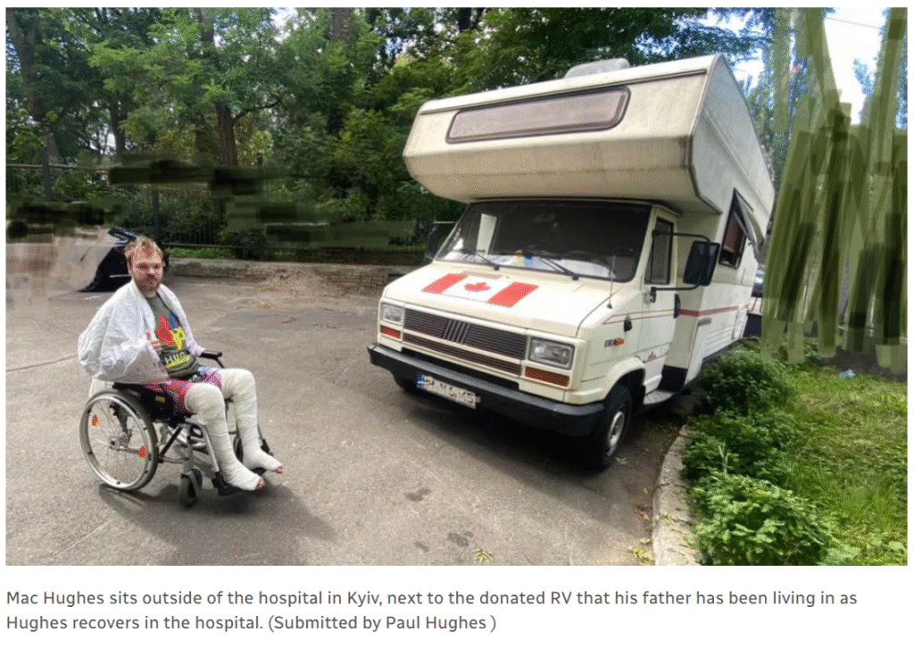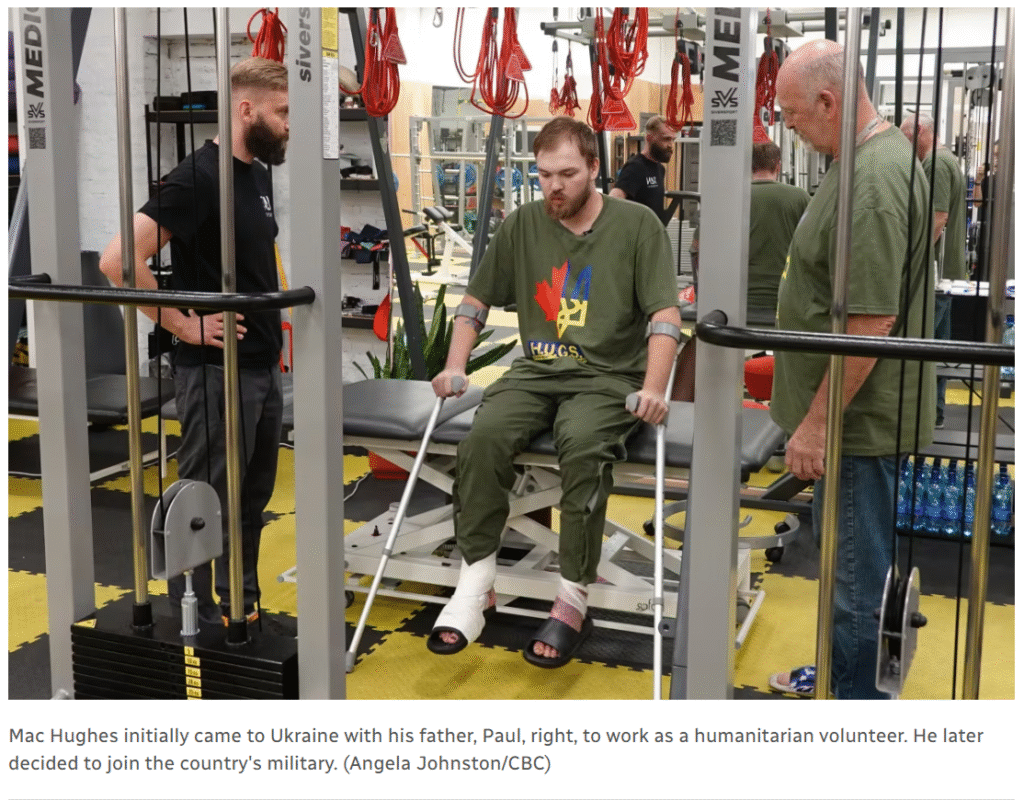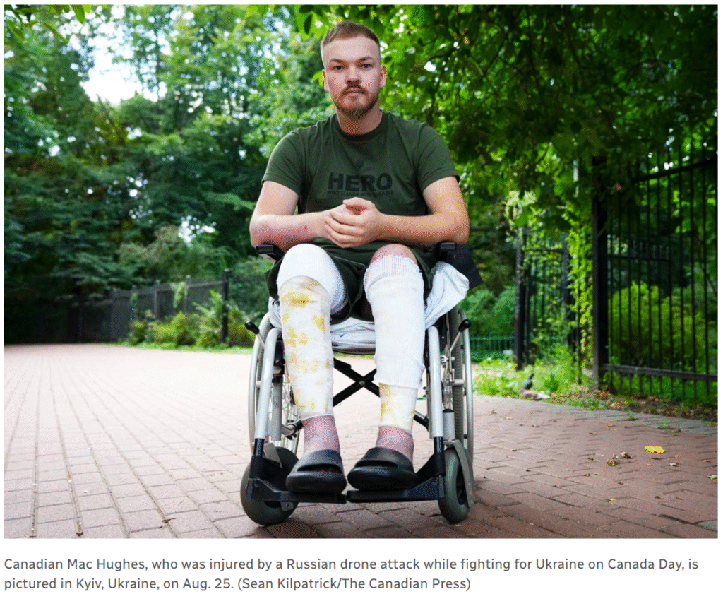 23岁的加拿大卡尔加里人麦克·休斯(Mac Hughes)去年加入乌克兰军队,今年7月1日(加拿大国庆日)在乌克兰南部扎波罗热(Zaporizhzhia)地区遭遇俄罗斯无人机袭击,导致严重烧伤。