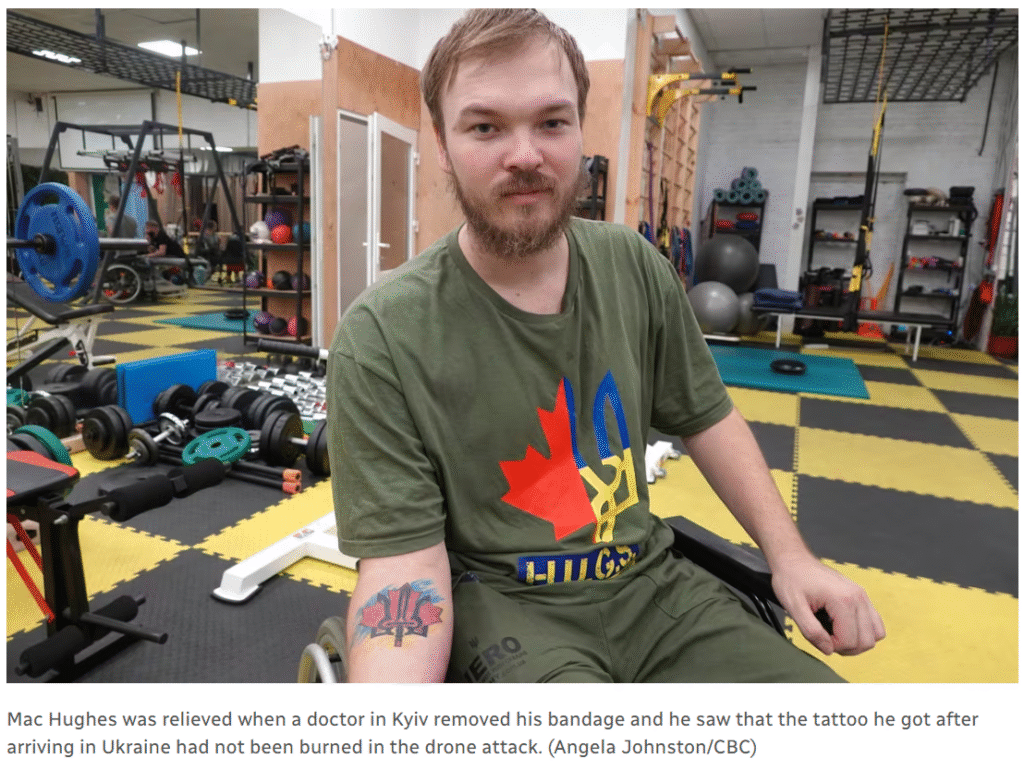 🏥 康复中仍不忘“信念”:加拿大国旗+乌克兰三叉戟纹身完好无损