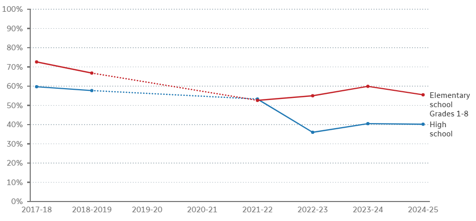 👉 高中生只有 40% 达到正常出勤标准