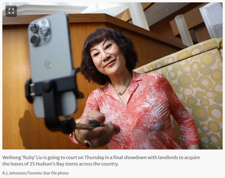 目前,她已通过其商业地产公司成功收购了其中3家The Bay门店的租约。如今她再次走上法庭,争取强制转让其余25份租约——即便大部分房东坚决反对。
