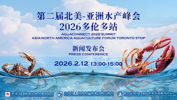 由中国水产流通与加工协会主办,加拿大华人餐饮总会承办,加中企业出海服务中心联合承办的“第二届北美-亚洲水产峰会·2026多伦多站”新闻发布会,于2026年2月12日在加中企业出海服务中心成功举行。会上正式宣布,以“联结东西,鲜航未来”为主题的行业盛会,将于2026年3月20日在加拿大安大略省多伦多市隆重揭幕。