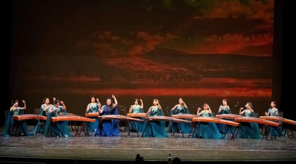 音乐类节目同样令人印象深刻。特邀嘉宾男中音歌唱家张峰教授深情演绎《长江水日夜流》,以厚重而真挚的情感打动人心;焦平筝乐团带来的古筝齐奏《赛马》气势磅礴,指尖流淌出的旋律仿佛万马奔腾;电吹管与合唱《送别》在悠扬旋律中传递出温暖与不舍。