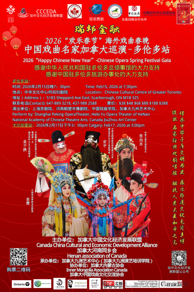 2026年2月15日晚,何伯钊剧院将迎来“欢乐春节”海外戏曲春晚重磅一站。来自中国国家级院团的顶级名家,与加拿大本地戏曲名家同台亮相,把京剧、豫剧、昆曲等国粹精华,浓缩进一个夜晚。
