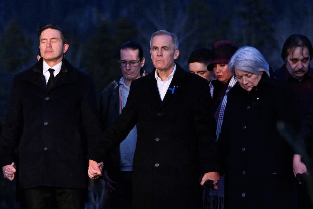 周五晚,超过 1000名民众 聚集在卑诗省北部小镇 Tumbler Ridge 市政厅前,悼念本周早些时候发生的严重枪击案遇难者。加拿大总理 Mark Carney、反对党领袖 Pierre Poilievre 以及多位政界人士到场献花,与社区共同哀悼。