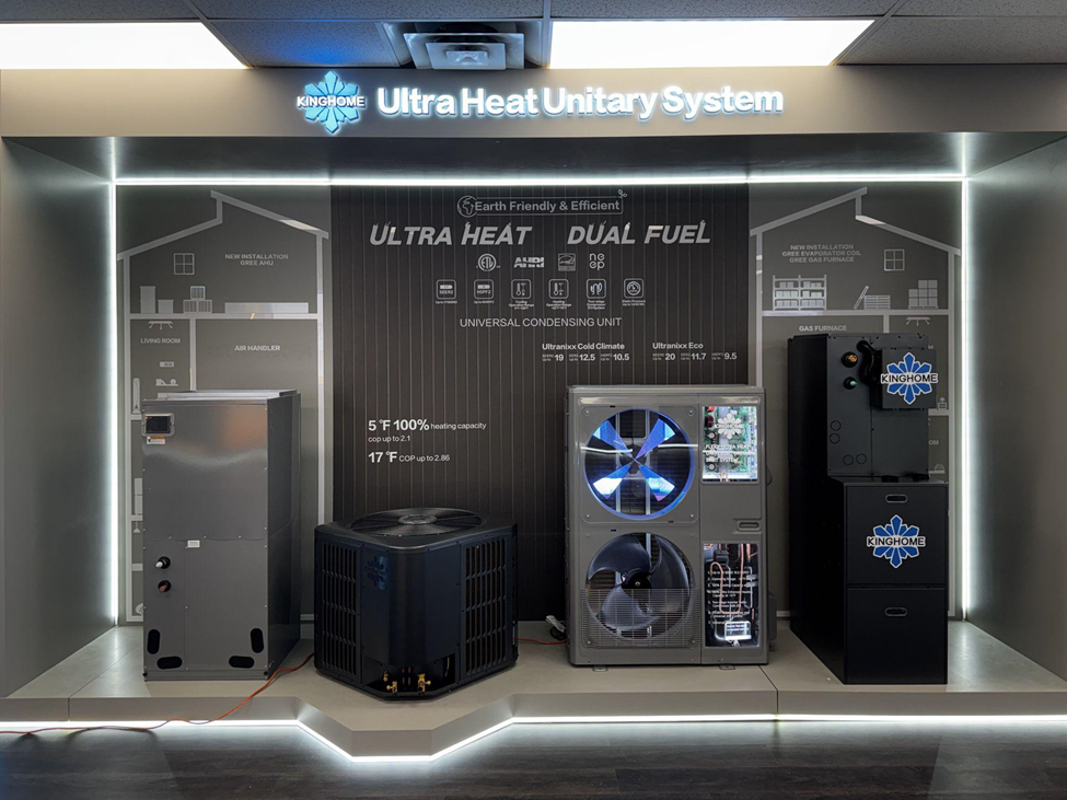 Kinghome Canada 旺市总部展厅, R32 Ultranixx Ultra Heat 寒冷气候型中央管道热泵系统陈列。