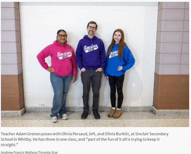 在惠比特 Sinclair 中学的声乐课上,有三位同名的 Olivia, 这并不是偶然,因为 Olivia 已连续 16 年稳坐安省女孩名字第一名——比这些青少年还“年长”的冠军纪录。