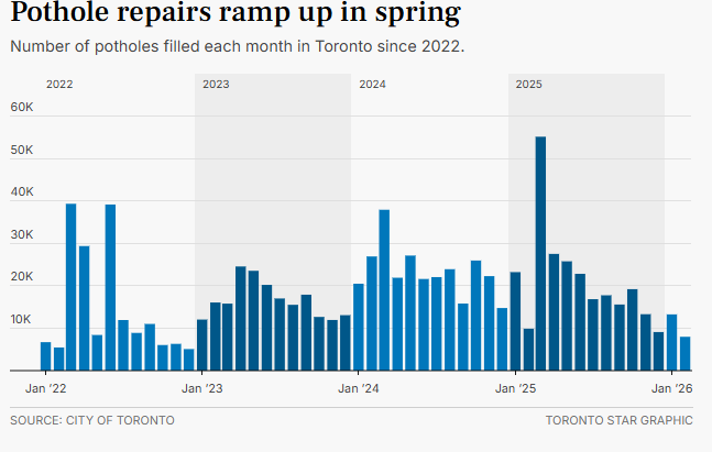 这个冬天,多伦多司机的怨气,几乎和路上的坑一样深。